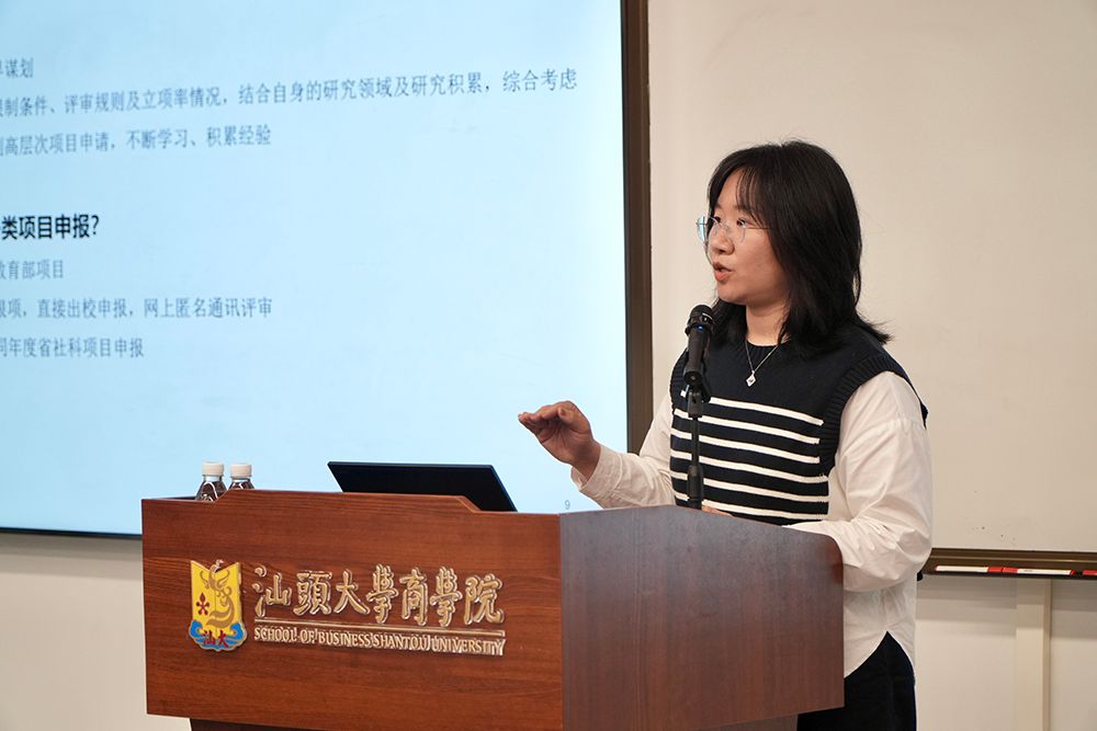 王锐敏以“社科科研项目及成果报奖”为题作分享。王锐敏有针对性地对比国家社科基金项目与教育部一般项目在选题要求、申报资格、项目限制及评审流程等方面的差异,提醒大家申报课题要提前布局、明确目标。在社科成果报奖方面,王锐敏建议大家应树立“代表作”意识,尽早制定报奖计划,细致打磨报奖材料。此外,王锐敏建议青年教师充分利用学校提供的资源与交流平台,扎实推进教学科研均衡发展。
