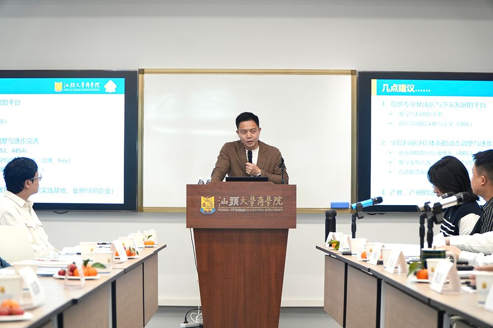 为扎实开展树立和践行正确政绩观学习教育,全面了解商学院青年教师所思所想,凝聚青年力量,助力青年教师职业发展,共促学院事业发展,3月23日下午,商学院在东海岸校区行政楼C328会议室召开青年教师座谈会。学院党委书记李润钿、院长梁强、副院长郭功星、各系主任、青年教师代表、学院行政办公室代表齐聚一堂,围绕教学科研、职业发展等话题展开深入交流。座谈会特邀人事处师资科副科长丘嘉闻、科研处文科办科员王锐敏作专题分享。