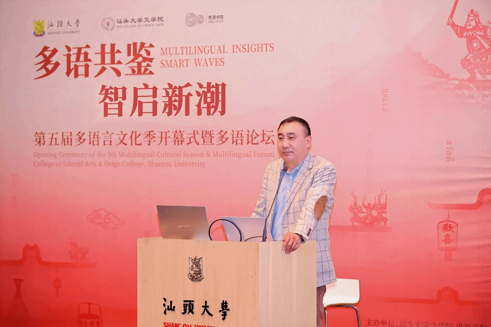文学院党委书记姚溱,文学院院长杨庆杰,文学院党委副书记、思源书院副院长汪晓娟,文学院副院长彭剑娥,副院长管宗昌,外文系系主任文兵,外文系副系主任杨婧媛,文学院团委副书记陈醒通以及两百余名师生共同参与本次开幕式暨多语论坛。本次活动还邀请了广东海智宇斯智能科技有限公司总经理、文学院思源书院恒星计划项目导师曾以诺,向洲国际教育总校长、正中出国创始人、汕头大学文学院2007届校友禤恒坤,金平区教师发展中心、东厦中学等实习基地代表应邀出席,共同见证本届多语言文化季正式启幕。