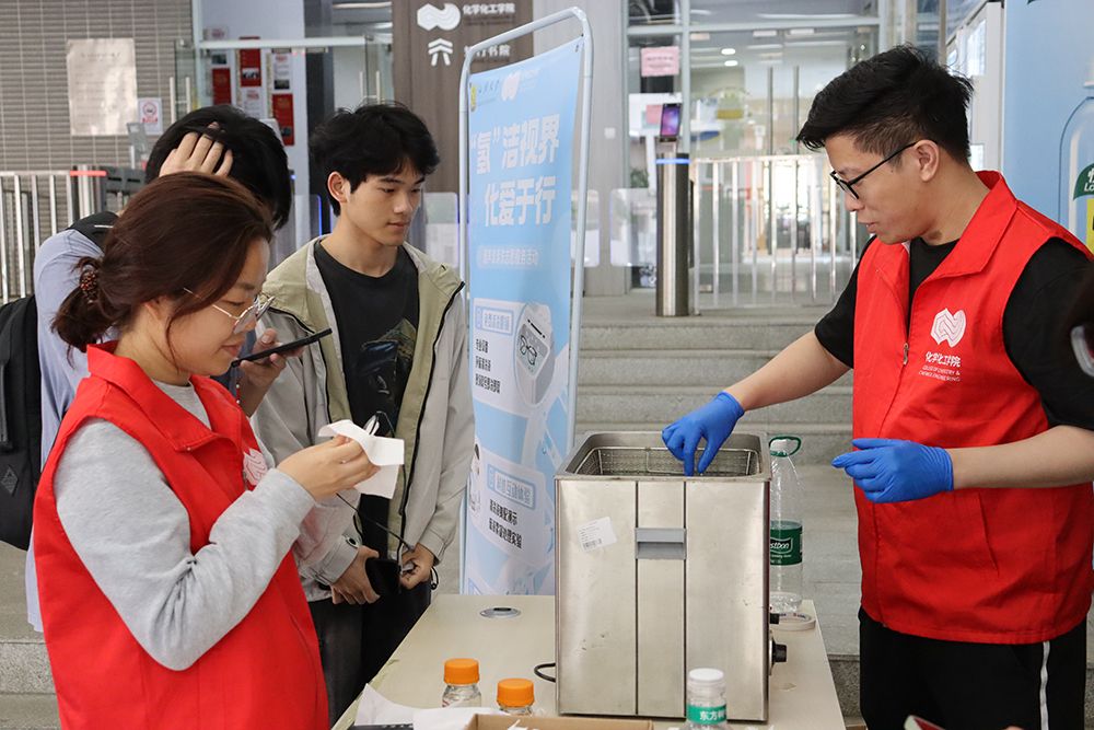为深入推进“聚链工程”建设,充分发挥组织引领作用,化学化工学院与知行书院立足学科特色,以专业技术赋能志愿服务,联合开展“氢”洁视界,化爱于行——超声波清洗志愿服务活动。活动深度融合党团育人、专业实践与志愿服务,让化学知识走出课堂,引导青年学子在专业服务中锤炼本领、传递温暖。