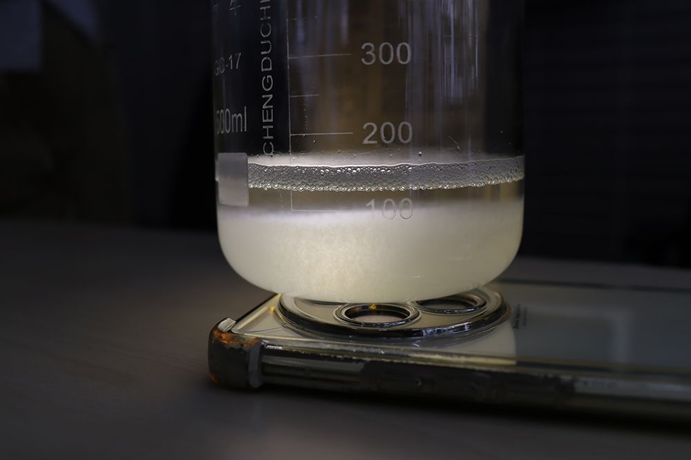 为让专业知识“活”起来,活动特别设置了“清洗液复配演示”与“废液絮凝处理实验”两个科普互动环节。志愿者们一边操作一边细致拆解原理,讲解环保清洗液的成分配比逻辑,演示废液中有害物质通过絮凝反应逐步沉降的全过程,用直观可见的实验现象,让师生轻松理解“超声波清洗为什么更干净”“废液如何环保处理”等专业问题,打破化学知识的“距离感”。