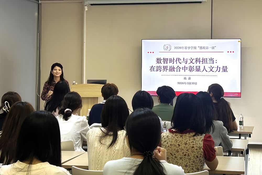 为深入学习宣传贯彻习近平新时代中国特色社会主义思想,深入学习宣传党的二十届四中全会精神,深入学习宣传贯彻习近平总书记对广东系列重要讲话和重要指示精神,引导文学院学子坚定理想信念,厚植家国情怀,彰显文科担当,切实增强政治认同、思想认同、理论认同、情感认同,3月30日下午,文学院党委书记姚溱以“数智时代与文科担当:在跨界融合中彰显人文力量”为题,为学院学生党员、学生骨干讲授2026年春季学期“思政第一课”,共同探讨文科人在数字浪潮中的立身之本、成长之路与作为之责。