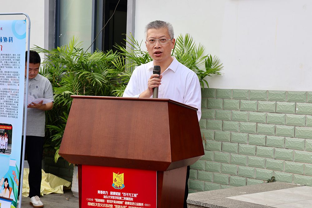 启动仪式上,附二院院长陈业晞深情致辞。作为一名土生土长的揭阳人,他表示:“今天能够带领医护团队回到家乡进行义诊并启动‘医路乡伴’项目,我内心充满感动。‘医路乡伴’不仅是一个项目,更是一份浓浓的乡情与承诺。”