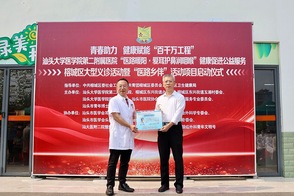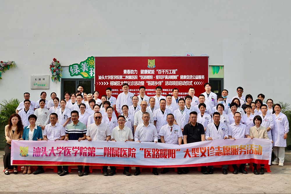4月11日上午,在中共榕城区委社会工作部、共青团榕城区委员会、榕城区卫生健康局的指导下,汕头大学医学院第二附属医院(以下简称附二院)“医路暖阳”健康促进公益服务队联合汕头大学医学院公益办公室走进揭阳市榕城区东兴街道玉浦村,举行“青春助力 健康赋能‘百千万工程’”——“医路暖阳·爱耳护鼻润咽喉”多学科义诊活动暨“医路乡伴”项目启动仪式。