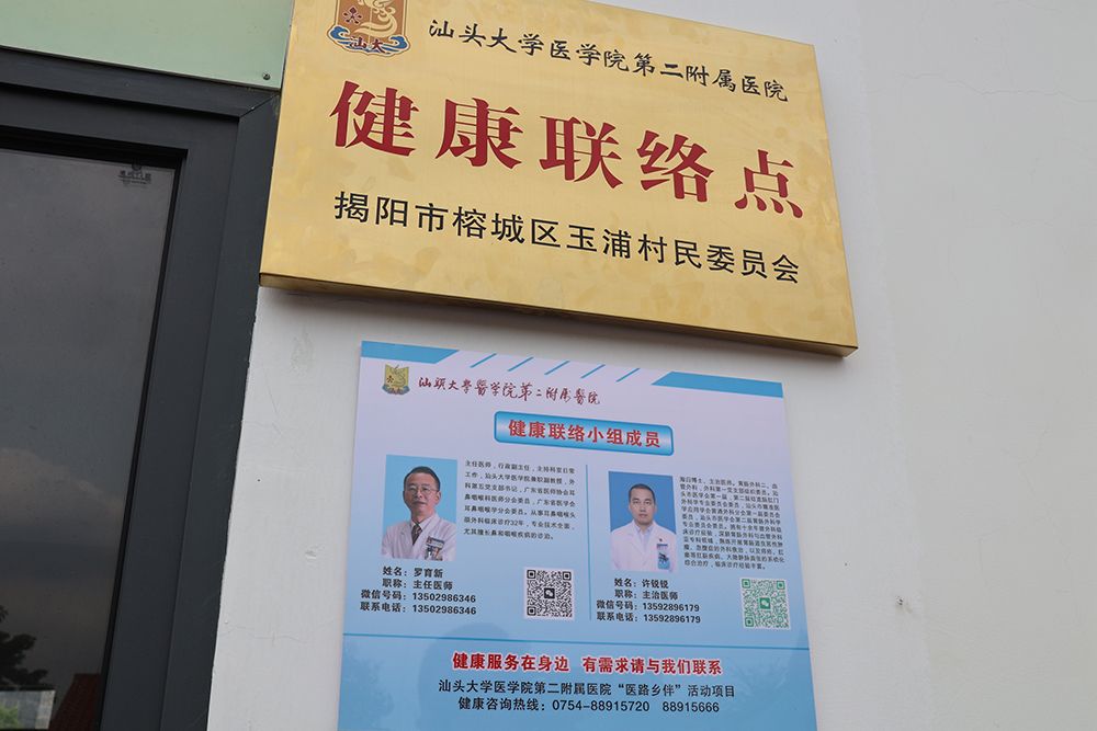 本次活动同步揭牌启动“医路乡伴”项目首个健康联络点——玉浦村联络点。附二院耳鼻咽喉头颈外科罗育新主任医师身为揭阳籍医者,此次主动请缨,出任玉浦村健康联络组组长。