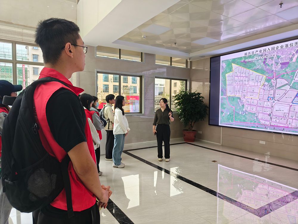 活动伊始,志愿者一行首先来到揭西县产业园管委会服务大厅,认真听取园区负责人关于园区建设、企业入驻、未来规划等方面的情况介绍,详细了解产业园得天独厚的区位优势、精准的产业定位和高效的服务体系,通过现场讲解与实地感知,志愿者们加深了对园区发展与校地共建的认识。