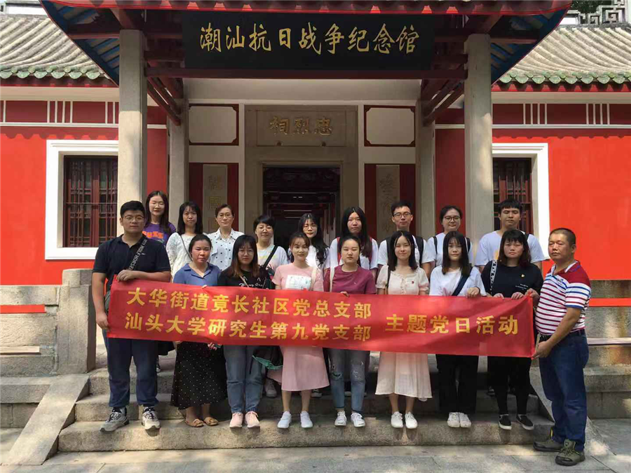 大华街道竟长社区党总支部联合汕头大学研究生第九党支部于10月19日共同开展“不忘初心、牢记使命”主题党日活动,增强党员的爱国主义意识和历史责任感。首先由社区街道领导结合“不忘初心、牢记使命”主题教育精神主讲专题党课,接着全体党员到中山公园红色基地抗日战争纪念馆开展爱国主义教育和志愿宣传,重温革命历史。