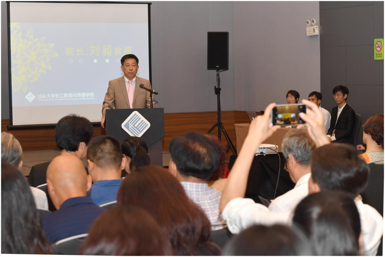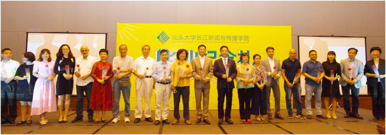 汕头大学党委副书记周镇松,长江新闻与传播学院院长刘昶,长江新闻与传播学院党总支书记兼副院长余珊燕,新闻学院首届毕业生、广州电视台总导演谢德炬,汕头市云心文化传媒有限公司总经理张伟忠、副总经理李传烘,学院教师和90多名应届毕业生出席了此次纪念礼。