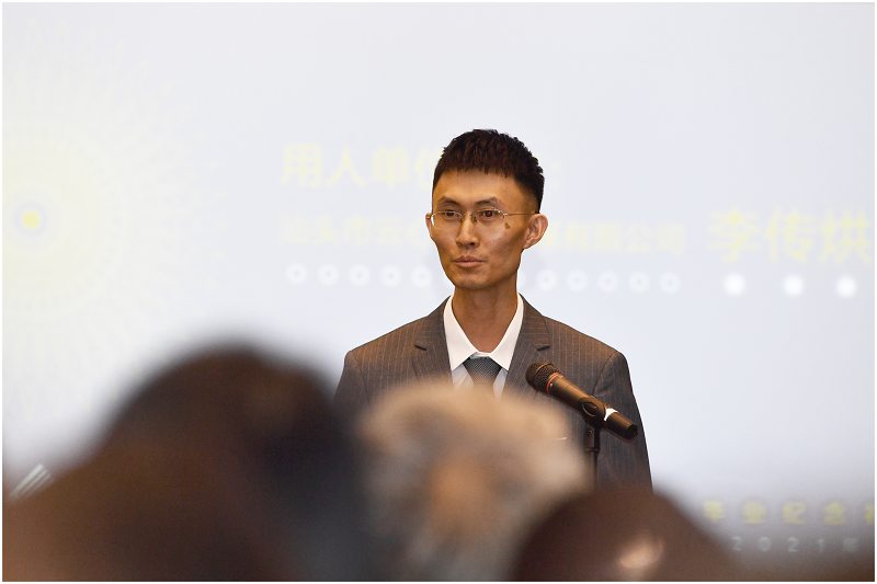 汕头市云心文化传媒有限公司友情赞助了本次毕业纪念礼,李传烘作为企业代表致辞。他期待毕业生们在未来的岗位上再接再厉,创造更好成绩。他鼓励同学们:“在未来,成为拥有智慧并富有激情的人,成为胸怀大志并脚踏实地的人,成为德才兼备并勇于创新的人,成为富有责任并敢挑重担的人”。