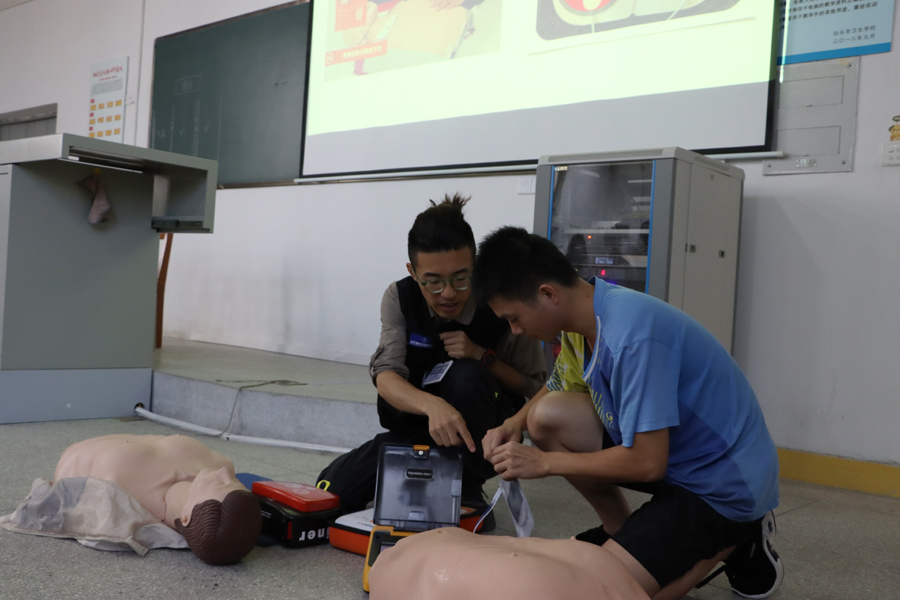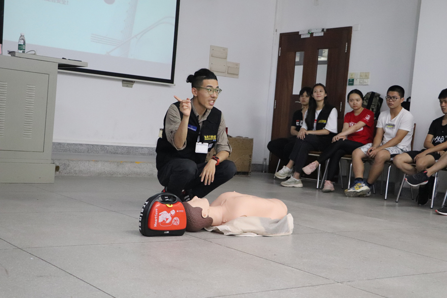 急救科普培训活动邀请了汕头大学2013届校友、慧救科技CEO刘钦作为主讲人,从急救的基础常识、心肺复苏CPR的实操技能和AED的使用方法等三个方面进行讲解。