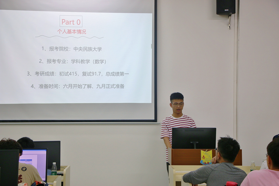 申请境外留学的同学则向大家分享了自己丰富的申研经验。从申请时间、材料准备等,详细介绍了申请留学的过程和注意事项。给师弟师妹们提供了“沉浸式”申研体验。