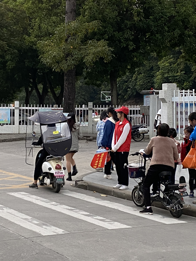 “这些看似由简单步骤组成的工作,实际操作起来并没有想象的那么简单。”21级机械制造与自动化陈革同学说到。面对一些棘手的问题,志愿者有时候会不知所措,但是这些并不会阻挡他们投身活动的步伐,因为他们的志愿之心是火热的。21级通信工程庄思妍同学高兴地说到:“我十分热爱公益活动,很荣幸可以参与到这次的活动中。活动中不仅可以有效地提醒来来往往的车辆,而且还维护了放学秩序,保护好汕头大学附属学校的学生们。”