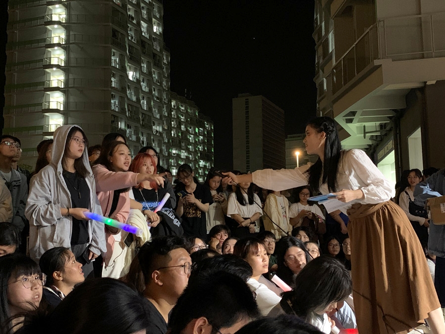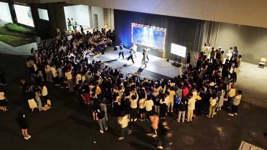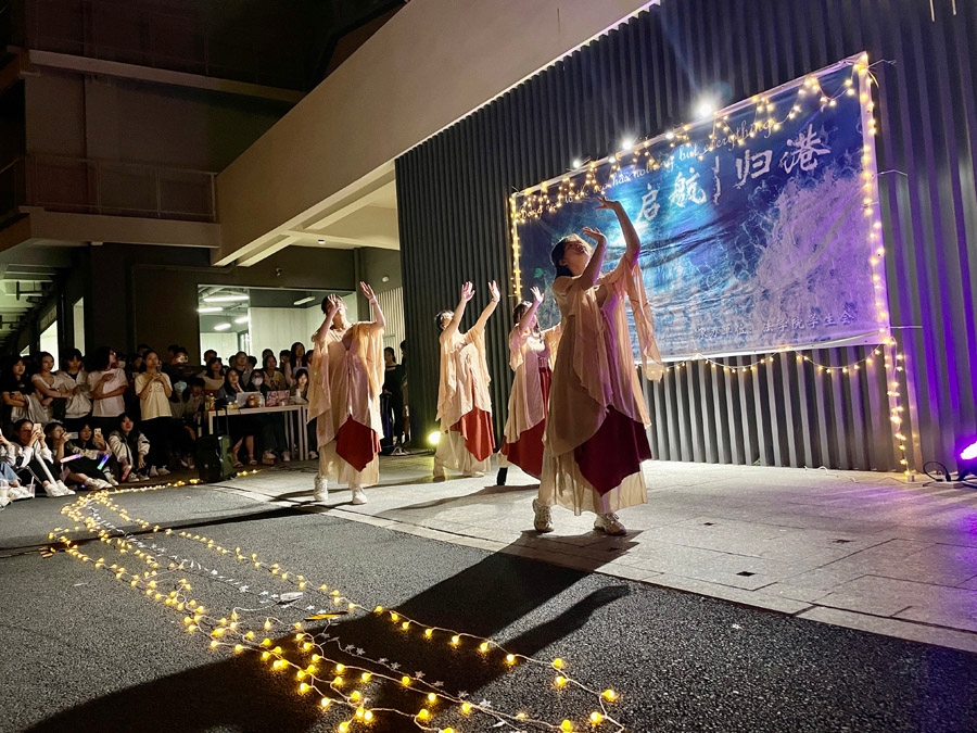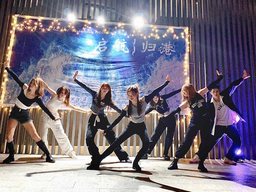 紧接着,迎新嘉年华活动拉开帷幕,一首《wonderful u》惊艳开场,为活动现场的同学们带来听觉上的享受。说唱表演、韩舞等点燃现场的氛围,台下的同学们纷纷打开手电筒,与舞台灯一同为表演者点亮一片专属于他们的星辰大海。古风舞蹈《红马》的舞者们用一缕轻袖把同学们带到江南雨乡,将江南“春水碧于天,画船听雨眠”的温柔、婀娜、优雅表现得淋漓尽致。