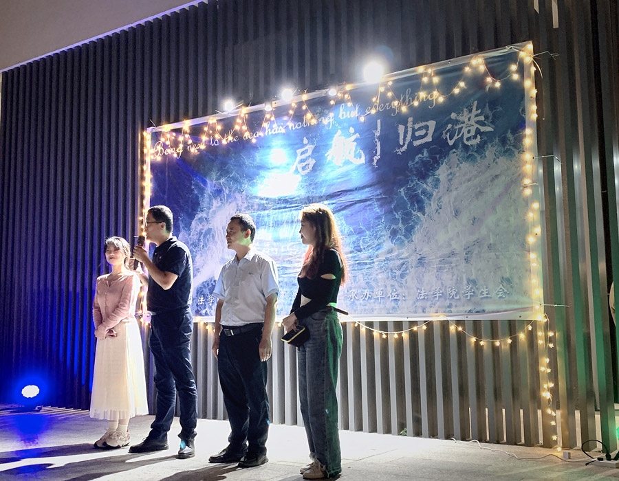 为进一步帮助2022级新生适应大学生活,展现学院学子的个人风采,丰富新生的校园文化生活,法学院、弘毅书院于11月19日晚,在东海岸校区学生宿舍C栋楼前空地举办主题为“启航·归港——与海相邻,与法同行”的迎新嘉年华活动,院党委副书记王风奇,团委老师王斌、王乐、向姣出席活动并作开场致辞,表达了对法学院全体新生的关心与期望。