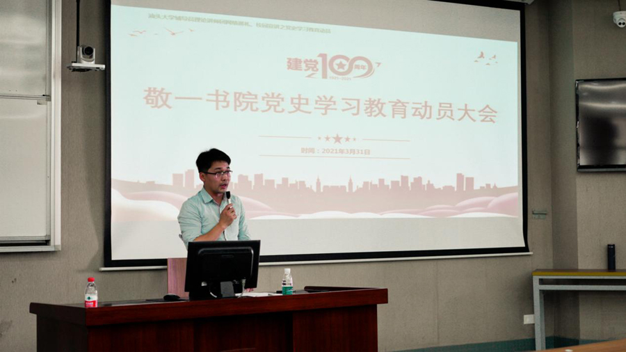 3月31日下午,敬一书院党总支在E座阶梯教室203开展2021年春季学期第一堂思政课暨党史学习教育动员,党总支书记卢桌彬主讲,95名书院学生党员、入党积极分子及2020级学生代表参加了讲座。