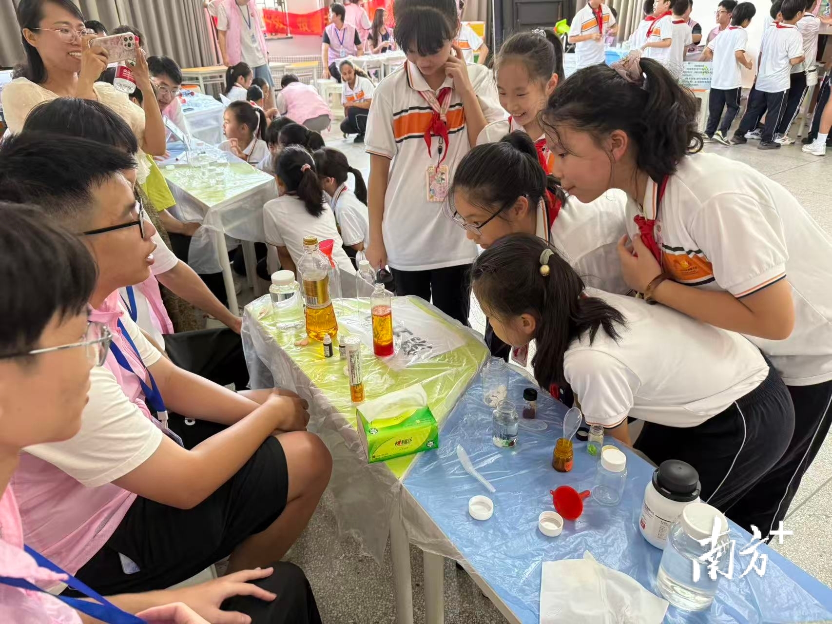 “无论是‘请进来’还是‘走出去’,我们都坚持科学性、安全性、趣味性统一,让每一个实验、每一场活动都能真实展现化学之美。”据汕头大学“化说科技、筑梦未来”课程团队负责人介绍,为确保科普实效,所有课程的志愿者均经系统培训,确保实验设计符合不同学段学生的认知水平,点燃学生探索科学的热情。