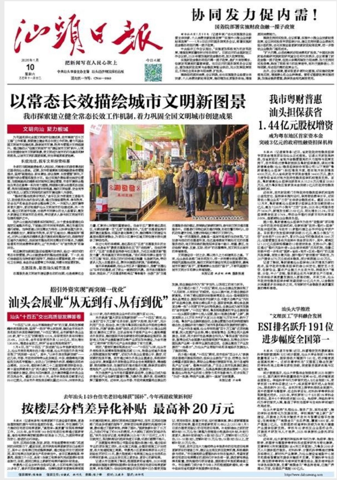 统计数据显示,汕头大学整体全球排名较2025年提升191位,国内高校学科数量排名升至第49位,进步幅度居全国首位。神经科学与行为学首次进入ESI全球前1%,使学校前1%学科总数达14个;临床医学首次进入全球前2‰,排名跃升261位。全校所有上榜学科排名全面提升,其中药理学与毒理学、社会科学总论、材料科学等学科实现跨越式进步。2025年,学校原有12个ESI前1%学科全部进位,其中6个学科进步超100位。免疫学、神经科学与行为学的首次入围,彰显了学校在医学与生命科学领域的布局成效。