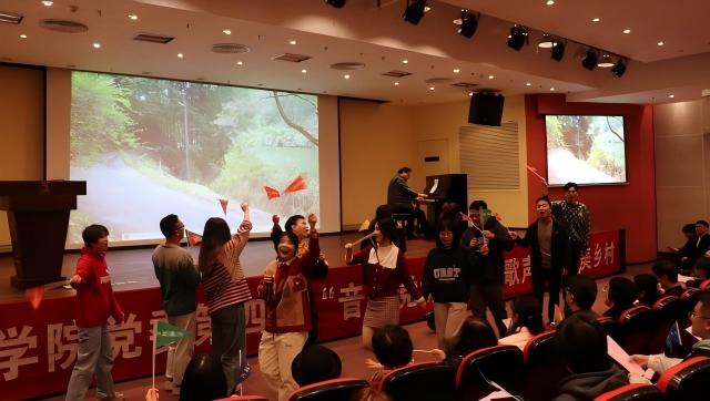 在实践层面,双院学生党团支部成为“音乐思政课”创作的主体,特别是在第八期“青春榜样”主题活动中,该院生物海洋研究生第一党支部以黄文秀同志的青春奋斗轨迹为主线,通过“音乐+思政”的融合形式,以旋律讲述榜样故事,以信仰点亮青春征程。物理系本科生党支部以抗战时期的经典歌曲为载体,采用情景剧、影子戏和红歌合唱等表现形式,带领师生穿越烽火岁月、感悟民族危亡时刻的血泪抗争与精神觉醒。学生需要综合运用理论所学与田野所得,完成从脚本撰写、音乐编配到舞台呈现的全流程。创作成果通过书院社区展演、校级新媒体平台、跨院系交流巡演“三级展示体系”进行辐射,让优秀作品的生命力得以延续。