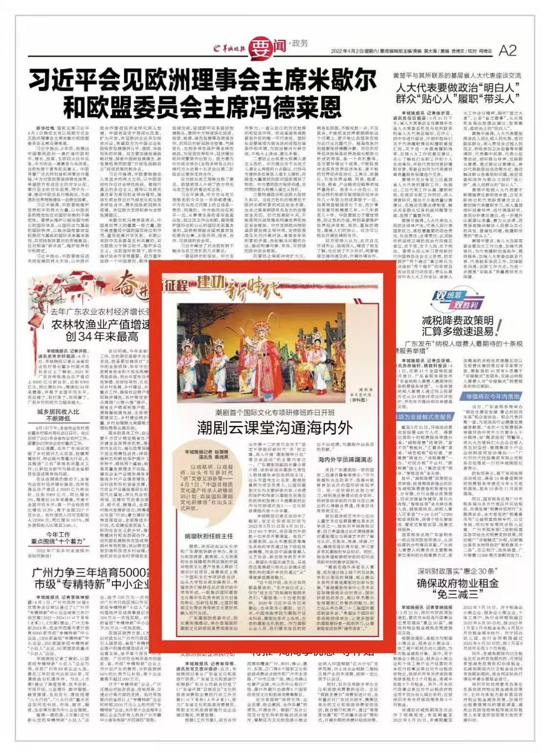 以戏联侨,以戏凝侨,汕头书写新时代“侨”文章又添新笔——4月1日,“中国非物质文化遗产传承人研修培训计划:首届国际潮剧文化研修班”在汕头正式开班。