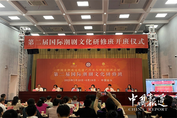 中国报道讯(郑雪云 通讯员李倩彤) 在国家文旅部、广东省文旅厅和汕头市各有关职能部门的支持下,2023年5月21日,由汕头大学联合广东潮剧院举办的国家级非物质文化遗产研修培训项目“中国非物质文化遗产传承人研修培训计划:第二届国际潮剧文化研修班”在广东潮剧院开班。