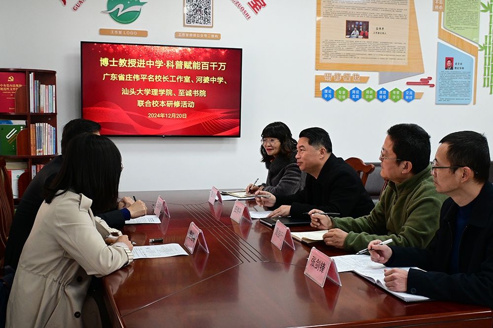 12月20日上午,理学院党委副书记王风奇与广东省庄伟平名校长工作室负责人、河婆中学党委书记庄伟平座谈交流,对进一步拓展多方交流合作交换了意见建议。双方将以此为契机,依托理学院学科资源优势,找准合作共建的切入点和契合点,在学科竞赛、生涯规划、心理辅导、学业提升等方面深化双向联动,让中学生开拓视野,仰望星空,点亮科学梦的同时,也让大学生真正读懂“国情书”“基层书”答好“使命卷”。